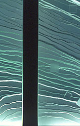 新宿三井ビル NTT-ATショールーム H1350mm×W7850mm(1マスH600mm×W600mm 重量35kg〜50kg) フロートガラス 8mm フレームステンレス ヘアライン ブラスト抜き加工 積層接着